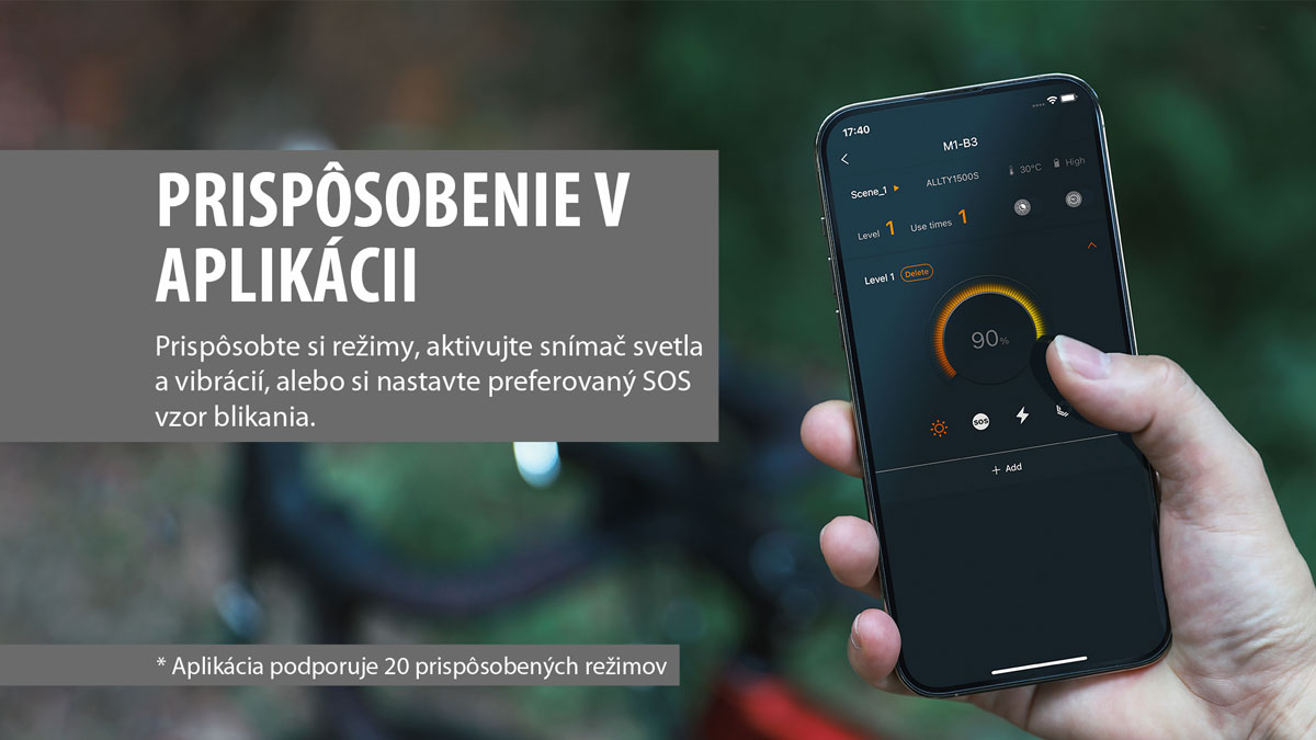 • Smart aplikácia a prispôsobenie: Cez aplikáciu Magicshine si môžete vytvoriť až 20 vlastných režimov a plynulo nastavovať intenzitu jasu od 1 % do 100 %.