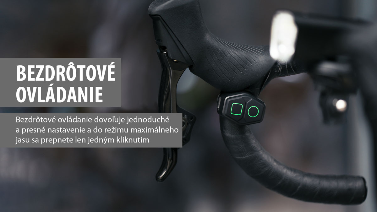 • Bezdrôtové ovládanie: Súčasťou balenia je diaľkový ovládač, ktorým môžete prepínať režimy a intenzitu bez toho, aby ste museli zložiť ruky z riadidiel.