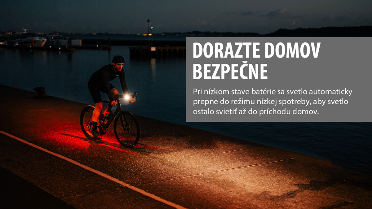 • Režim nízkej spotreby: Pri kritickom stave batérie sa svetlo prepne do úsporného módu, ktorý vás bezpečne sprevádza až do cieľa.