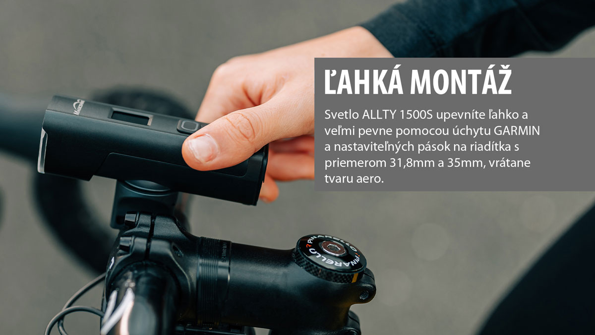 ALLTY 1500S je prémiové predné svetlo navrhnuté pre náročných cestných aj horských cyklistov. Elegantný dizajn v sebe ukrýva výkonnú hlavnú LED jednotku s výkonom 1500 lúmenov a samostatné denné svietenie (DRL), ktoré zvyšuje vašu viditeľnosť v premávke počas celého dňa. Vďaka univerzálnemu Garmin uchyteniu ho ľahko upevníte na riadidlá aj na prilbu.