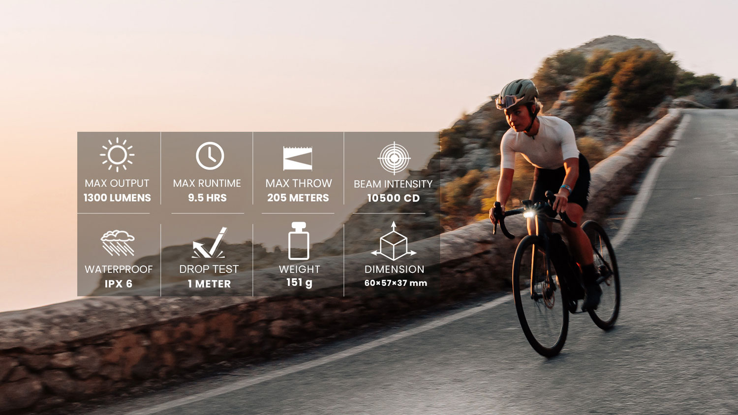 HORI 1300 je moderné cyklistické svetlo s inovatívnym horizontálnym dizajnom, ktoré kombinuje vysoký výkon s inteligentným ovládaním. Je ideálnou voľbou pre mestské dochádzanie, cestnú cyklistiku aj gravel, pričom vďaka hliníkovému telu poskytuje odolnosť aj v náročných podmienkach.