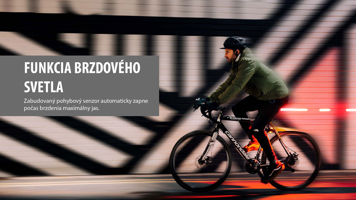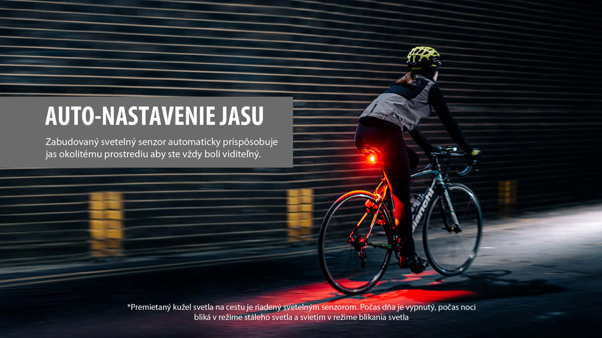Snímač pohybu a jasu: Svetlo automaticky reaguje na intenzitu okolitého svetla a pri brzdení aktivuje maximálny výkon pre upozornenie vodičov.