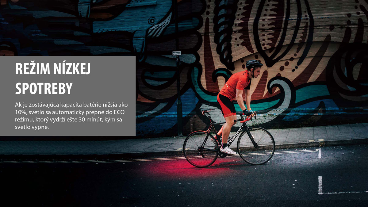 Skupinový režim: Špeciálny režim blesku (10 lm) šetrí zrak spolujazdcov a predlžuje výdrž batérie až na 50 hodín.