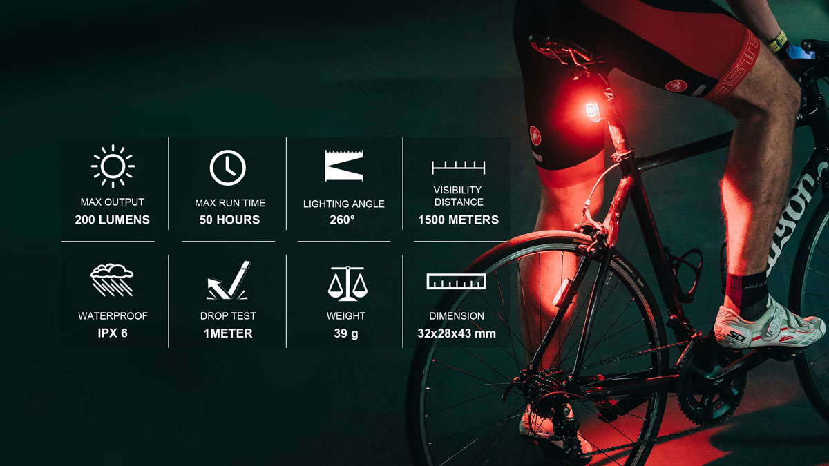 SEEMEE 200 V3.0 je vylepšená verzia jedného z najvýkonnejších zadných svetiel na trhu. S elegantným dizajnom a maximálnym výkonom až 200 lm kombinuje hlavné svetlo s unikátnym spodným „sledovacím svetlom“ pre maximálnu viditeľnosť v každej situácii.