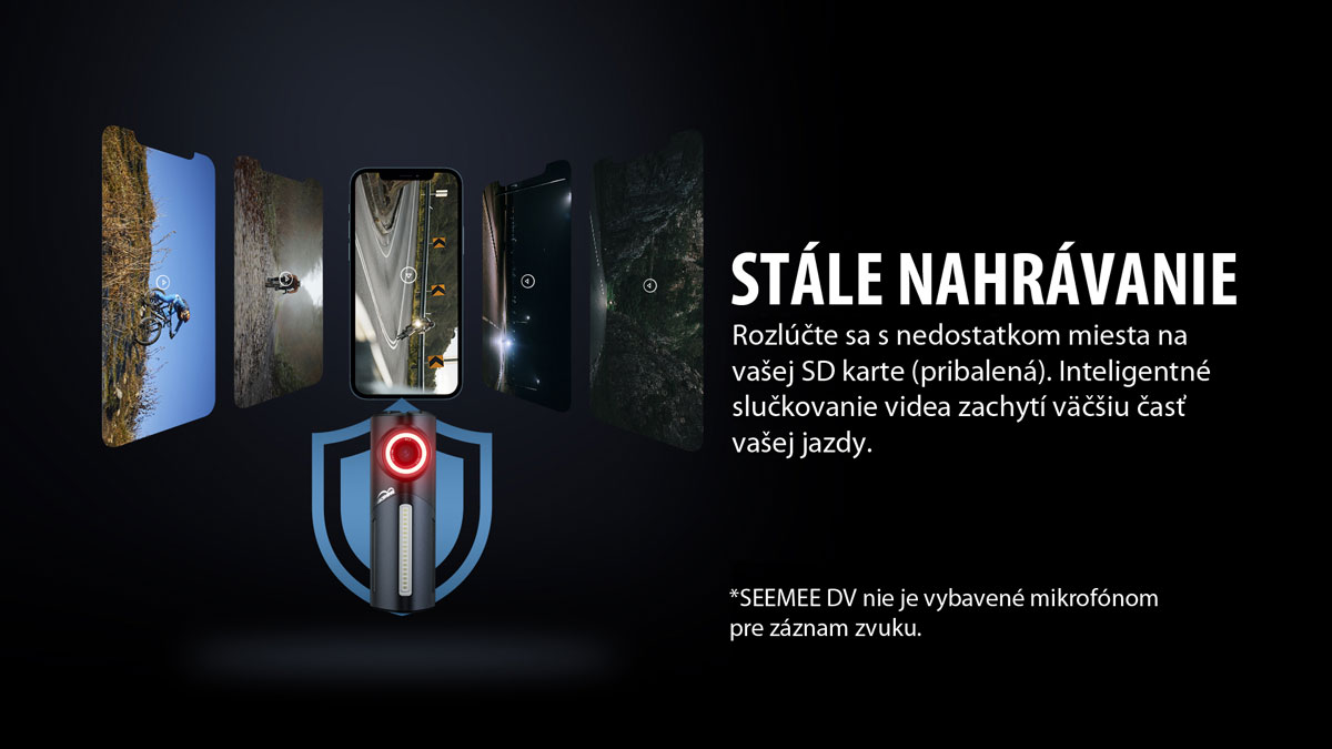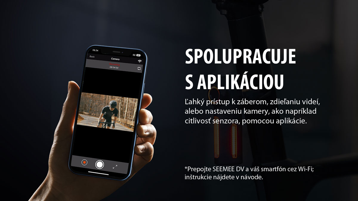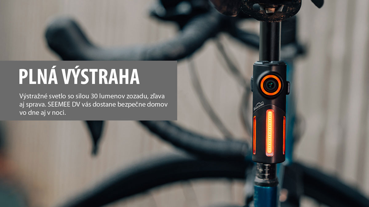 SEEMEE DV je revolučná kombinácia zadného svetla a HD kamery, ktorá nepretržite monitoruje situáciu za vami a v prípade nehody automaticky uzamkne dôkazný záznam. Ponúka širokouhlý záber 146°, ovládanie cez Wi-Fi aplikáciu a extrémne dlhú výdrž batérie až 110 hodín. S odolným hliníkovým telom a jednoduchou montážou ide o najpokročilejší bezpečnostný prvok pre moderného cyklistu.