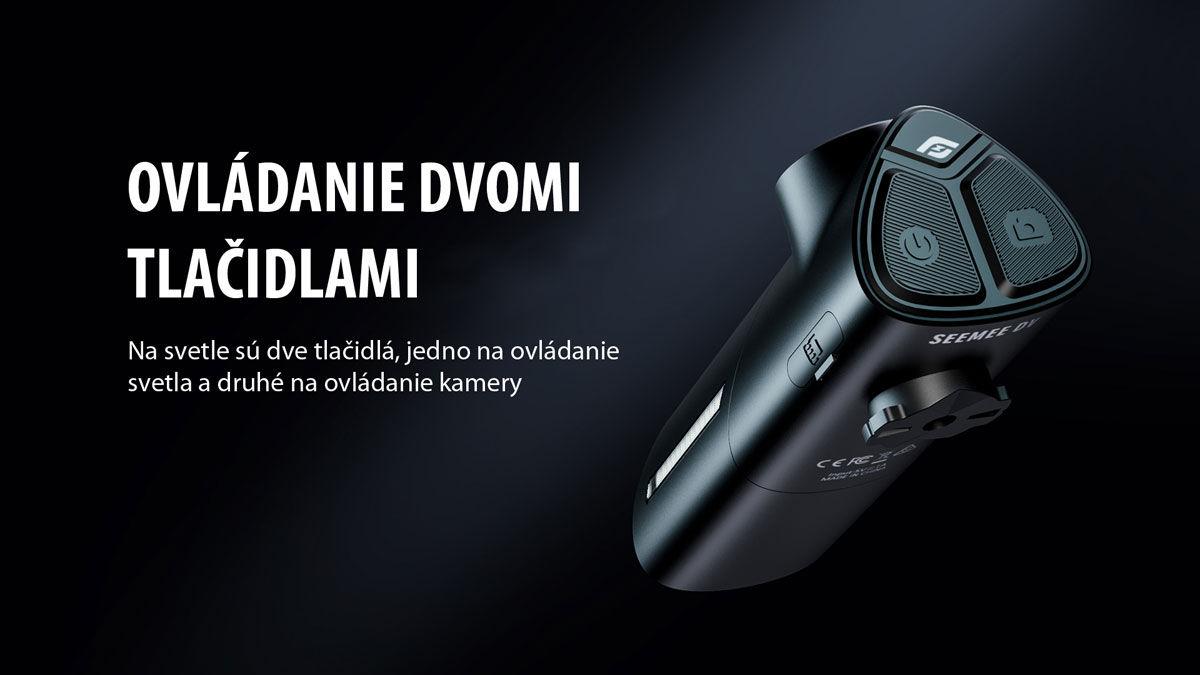 • Dvojité ovládanie: Dva nezávislé prepínače v hornej časti umožňujú samostatne ovládať funkciu svetla a záznam kamery.